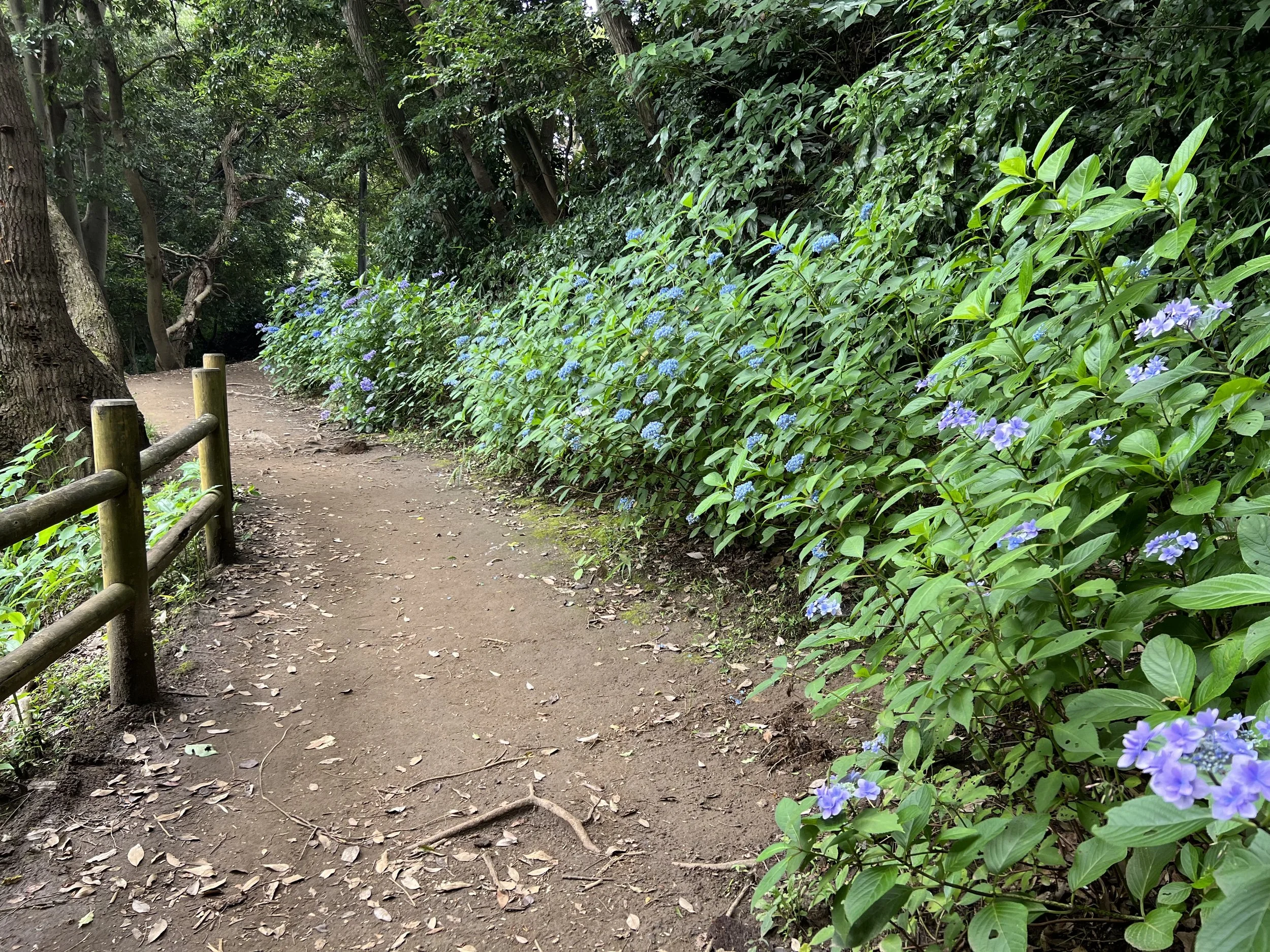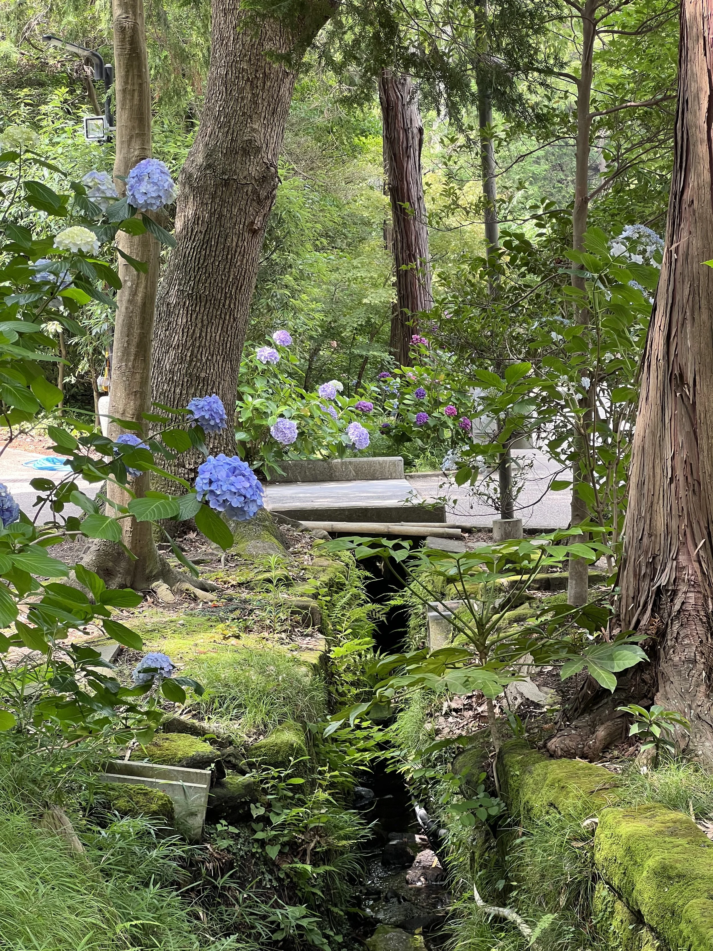 Time to continue the Daibutsu hike, with some beautiful views of Kamakura and the coast that were a great reward and motivation for the rest of the hike. After a bit, if you’d like, you can take a little detour to check out Itsuki Garden (樹ガーデン), a café that seems to come out of nowhere, with a spacious multi-level terrace and views of the forest, serving light lunches and pastries. The path to the café was cute, with hydrangeas on each side.
